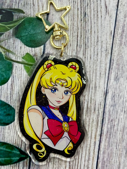 Space sailor - moon glitter acrylic keychain